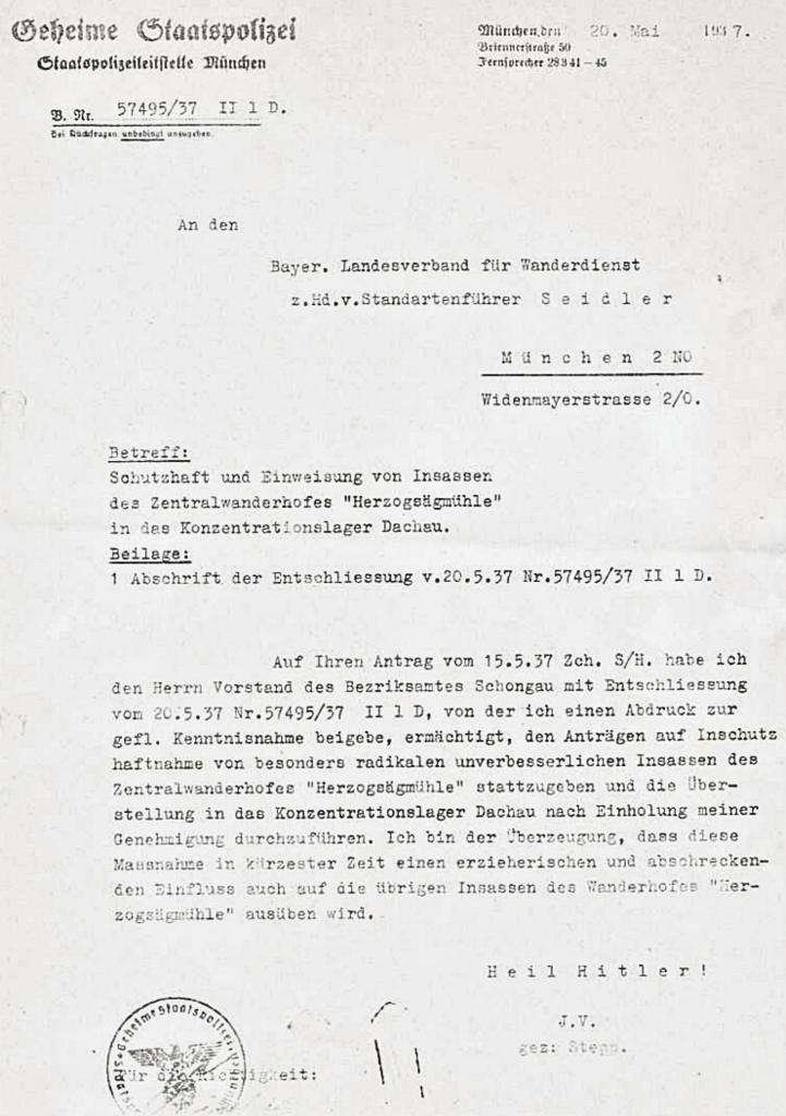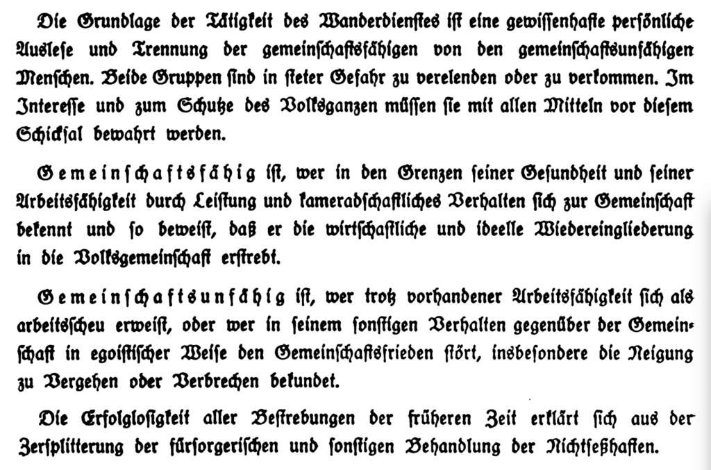 Die Wanderhöfe als Orte, in denen Wanderarbeiter, Bettler, Behinderte und FĂŒrsorgebedĂŒrftige aufgenommen und entsprechend der NS-Ideologie mit Untertanendrill und Zwangsarbeit angeblich zu guten Mitgliedern der sogenannten Volksgemeinschaft umerzogen werden sollten, sollte nach Seidlers Vorstellungen eine reichsweite Lösung sein, um abweichende Personen und Lebensweisen zu kontrollieren und aus der Ăffentlichkeit zu entfernen. Seidler war eng mit anderen NS-Zwangs-, Folter- und Vernichtungseinrichtungen verbunden, so etwa mit dem KZ Dachau sowie den Einrichtungen der sog. Euthanasie. Er war auch ganz persönlich fĂŒr den Tod von Insassen seiner Einrichtungen verantwortlich, etwa, indem er sie ins KZ ĂŒberstellen lieĂ.Â