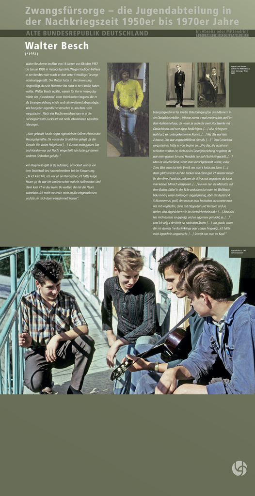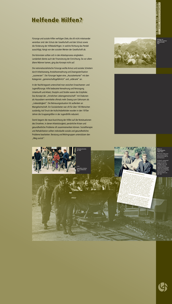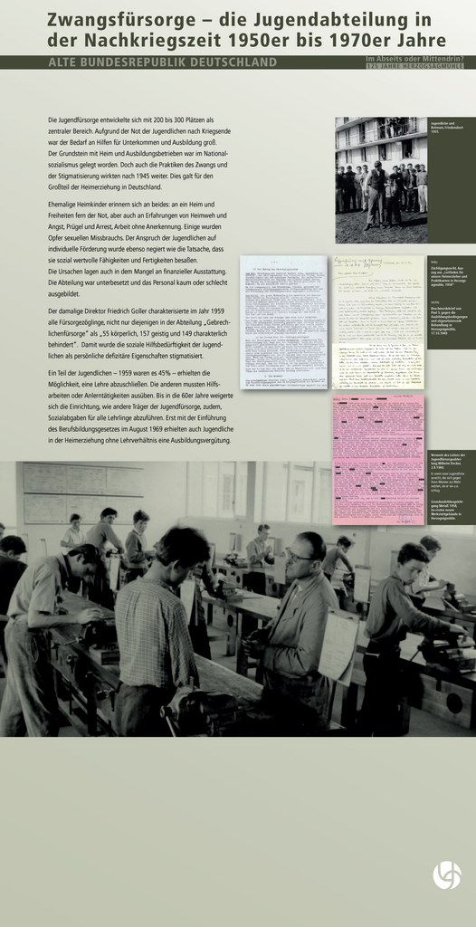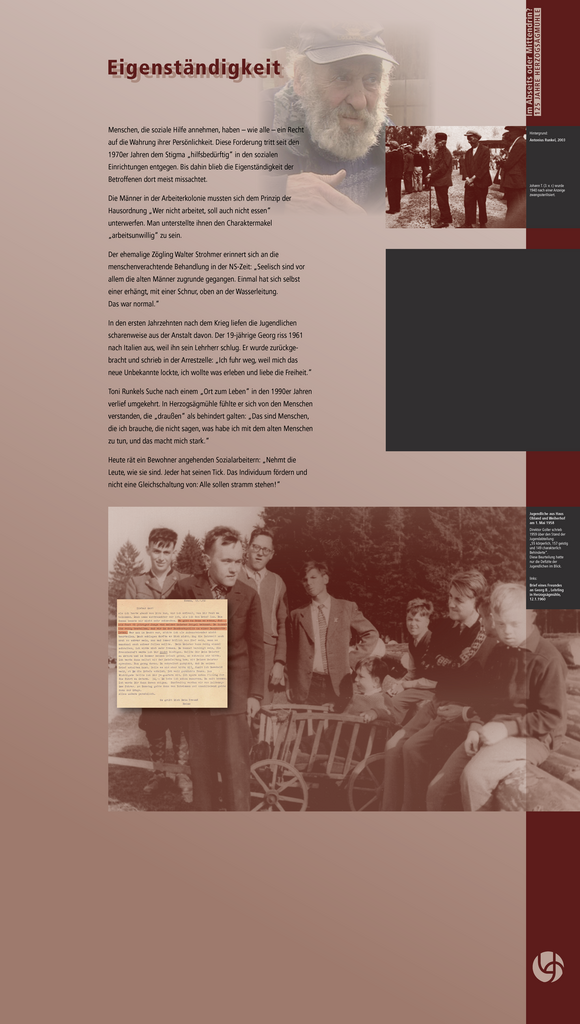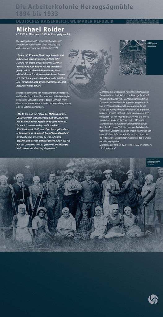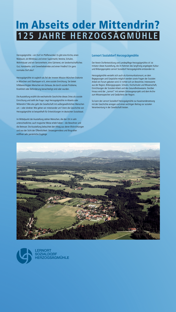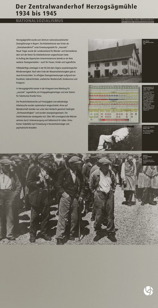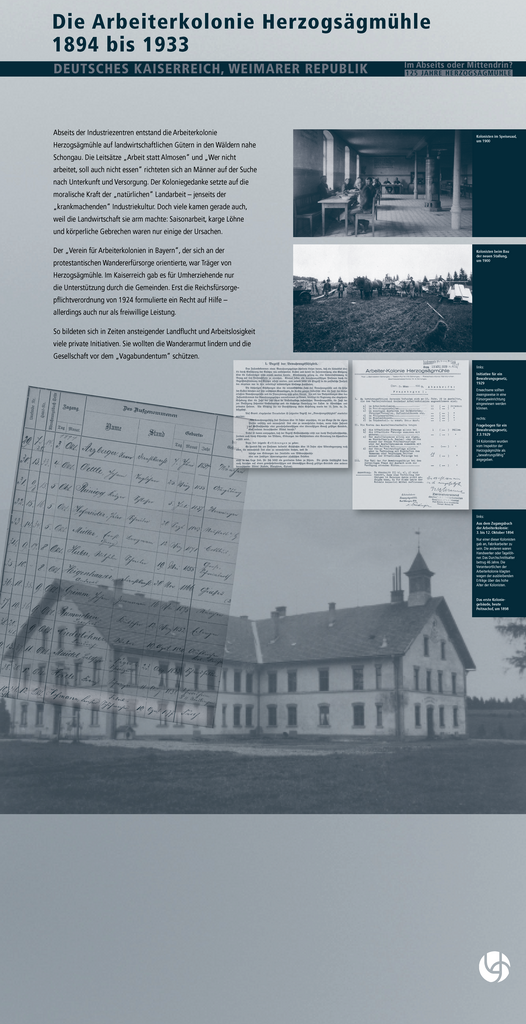 Die Ausstellung "Im Abseits oder Mittendrin?" kann vor Ort im Lernort Sozialdorf Herzogsägmühle besucht werden – und nun auch hier!