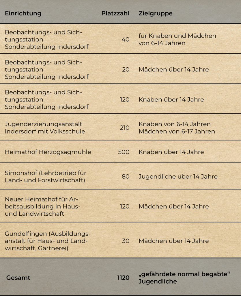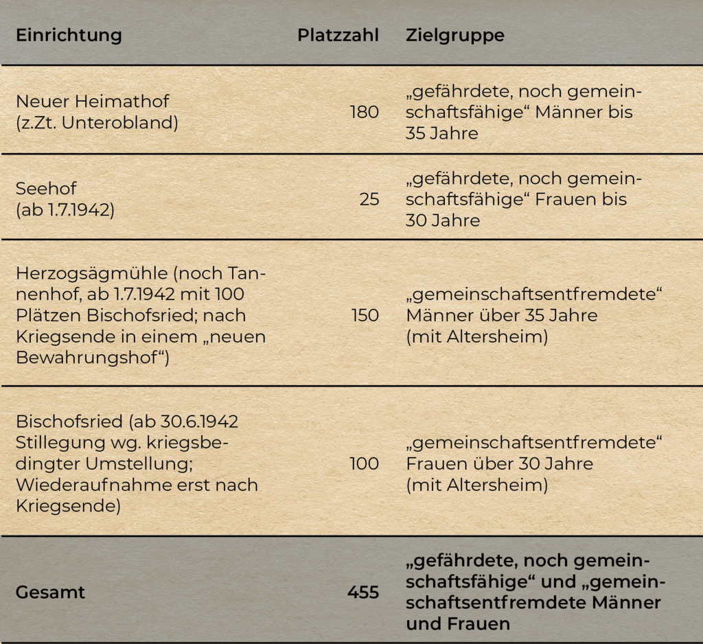 Darüber hinaus unterhielt der Verband weitere Einrichtungen zur Isolation und „Erziehung“: