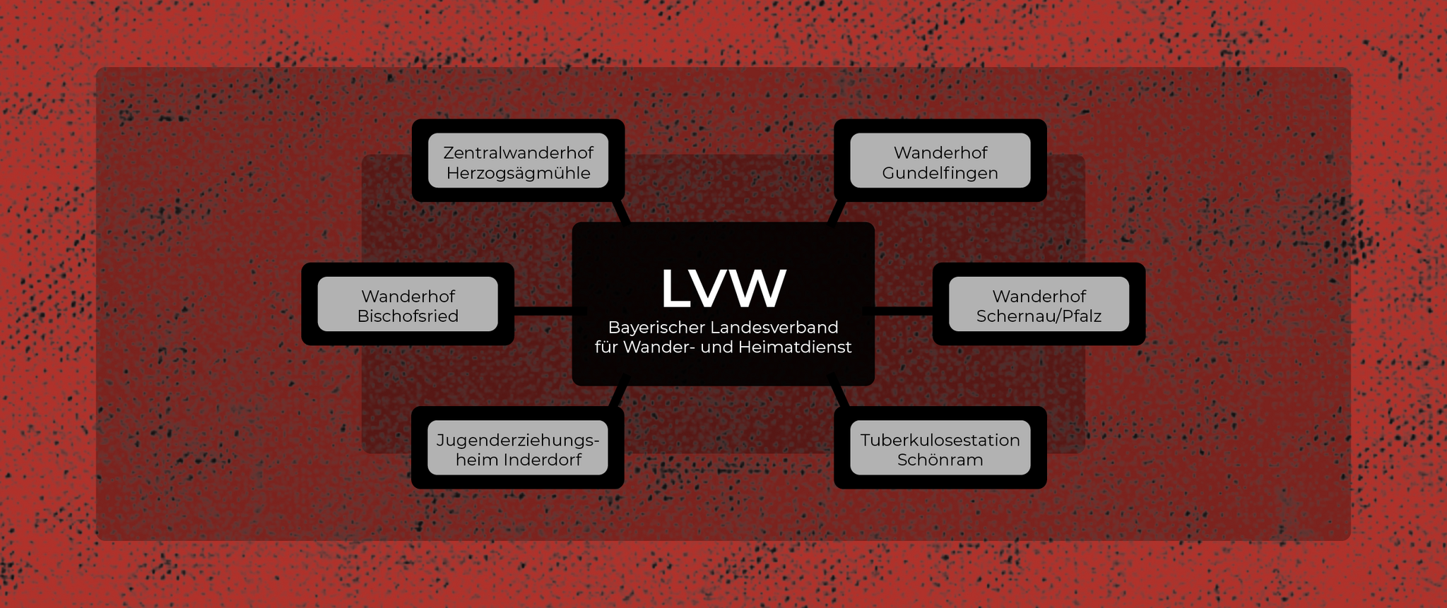 Der „Bayerische Landesverband für Wander- und Heimatdienst“ (LVW) wurde am 1. Juni 1934 als Körperschaft des öffentlichen Rechts gegründet, also schon in der frühen Phase des nationalsozialistischen Regimes. Organisatorisch war er der Gesundheitsabteilung des Bayerischen Innenministeriums unterstellt. Der Verband fungierte als zentraler Träger von Einrichtungen der sogenannten Zwangsfürsorge – ein repressives System, das Menschen, die nicht in das nationalsozialistische Ideal von „Ordnung“ und „Arbeitstüchtigkeit“ passten, ihrer Freiheit und Würde beraubte.