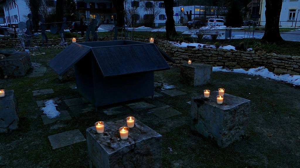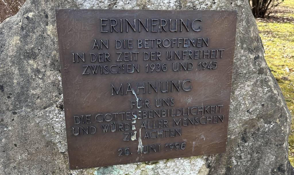 Gedenken am "Denkmal gegen das Vergessen" in Herzogsägmühle