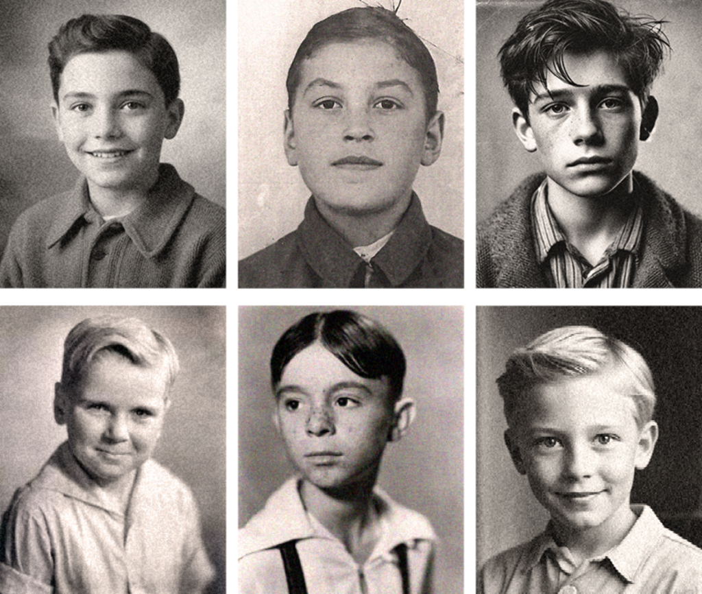 Das Kind in der Mitte der oberen Reihe ist Georg Brönner, dessen Geschichte während des Nationalsozialismus wir hier erzählen wollen. Die anderen Fotos zeigen (teilweise bekannte) Kinder aus der Nachkriegszeit.