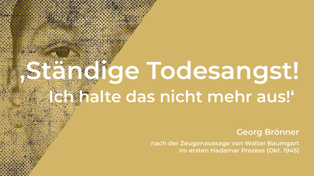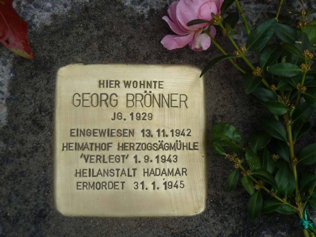 Georg Brönner starb in Hadamar am 31. Januar 1945. Heute wissen wir aus Anstaltsunterlagen und Zeugenaussagen, die nach dem Krieg in Prozessen gemacht wurden, auch mher über die genaueren Umstände. Brönner musste ein grässliches Schicksal erdulden. Der Anstaltsarzt notierte am 30. Januar, dass der Junge lange Zeit offenbar im Fuhrpark gearbeitet hatte und zwar ohne jedes Problem, im Gegenteil.