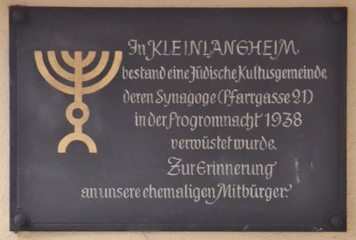 Gedenktafel für die Jüdische Kultusgemeinde und die Synagoge in Kleinlangheim.