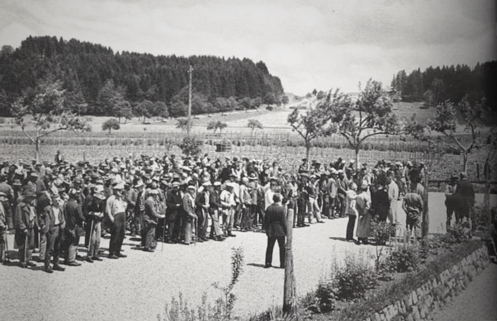 Arbeitszeiteinteilung, Verkündung von Informationen, Belehrung, Bestrafung: Die Insassen wurden gezwungen, auf dem Appellplatz von Herzogsägmühle anzutreten.